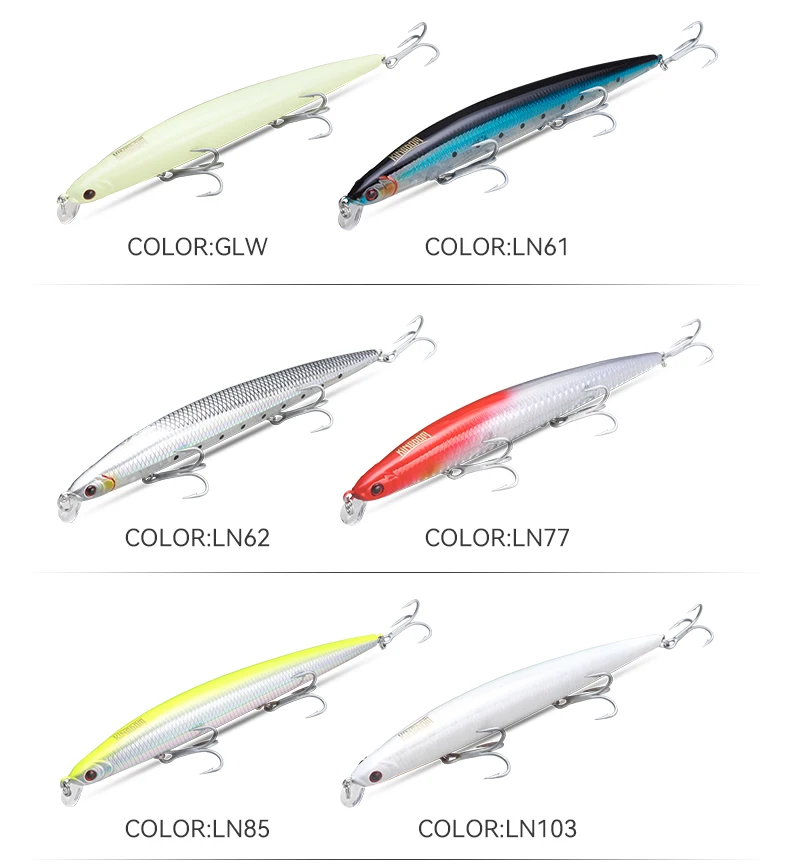 La pesca de lubina y lucio requiere fuerza, y el señuelo de pesca KINGDOM de lance largo, flotante, de hundimiento lento, con 14,5 g, 19 g y 29 g, artificial, duro y wobbler para lubina y lucio, responde a esa necesidad. Disponible en pesos de 14,5 g, 19 g, 29 g y 33 g, este señuelo Kingdom es ideal para la pesca en arroyos, lagos y playas. A diferencia de los señuelos básicos, el perfil de señuelo artificial duro de hundimiento lento de minnow aumenta la probabilidad de enganche. Además, su flotabilidad y hundimiento lento permiten capturar depredadores a múltiples profundidades. Dado que los pescadores buscan un precio y un rendimiento fiables, suelen elegir este señuelo de lance largo KINGDOM durante las rebajas de temporada.